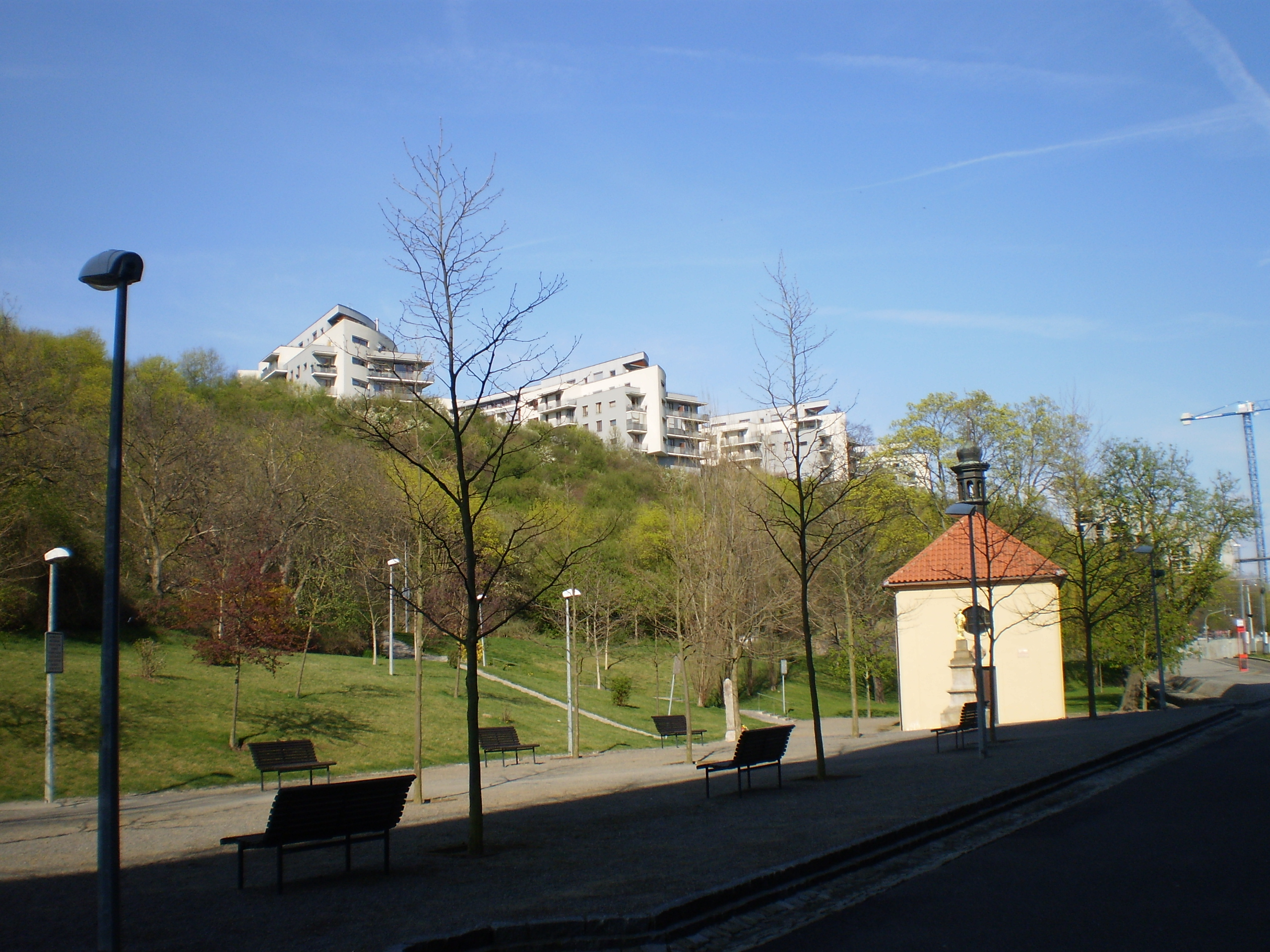 Výstavba v mém obytném rajónu neprobíhá jen na Waltrovce. I v samotných NB se budují nové objekty. Přímo u stanice metra NB je už skoro hotový administrativní komplex Metronom Business (obr. 1 a obr. 2) a kousek před ním vyrůstá obytný blok v rámci projektu SMART (obr. 3). Nedaleko za stanicí metra NB se Praha 13 transformuje do Prahy 5, v níž se nachází Smíchov. Na počátku se však skvějí Jinonice a na obr. 4 vidíte jednu z jejich úvodních uliček, kterou tak strašně rád procházím. V Jinonicích jsou kromě starších (vesnických) a novějších domečků (vil) dvě sídliště. Na obr. 5 vidíte to starší a na obr. 6 novější. V novější sídlištní zástavbě Jinonic se kupříkladu nachází objekt Fakulty sociálních věd Univerzity Karlovy (obr. 7). Hned za tím objektem je výhled dolů na Prahu, kde můžete spatřit první již téměř dokonanou členitou budovu (obr. 8, obr. 9 a obr. 10), asi též business a nějaký ten nákup. No a kousek odtud jsou vidět domečky, které sice patří do Jinonic, ale je to prakticky už předpolí Smíchova (obr. 11).
