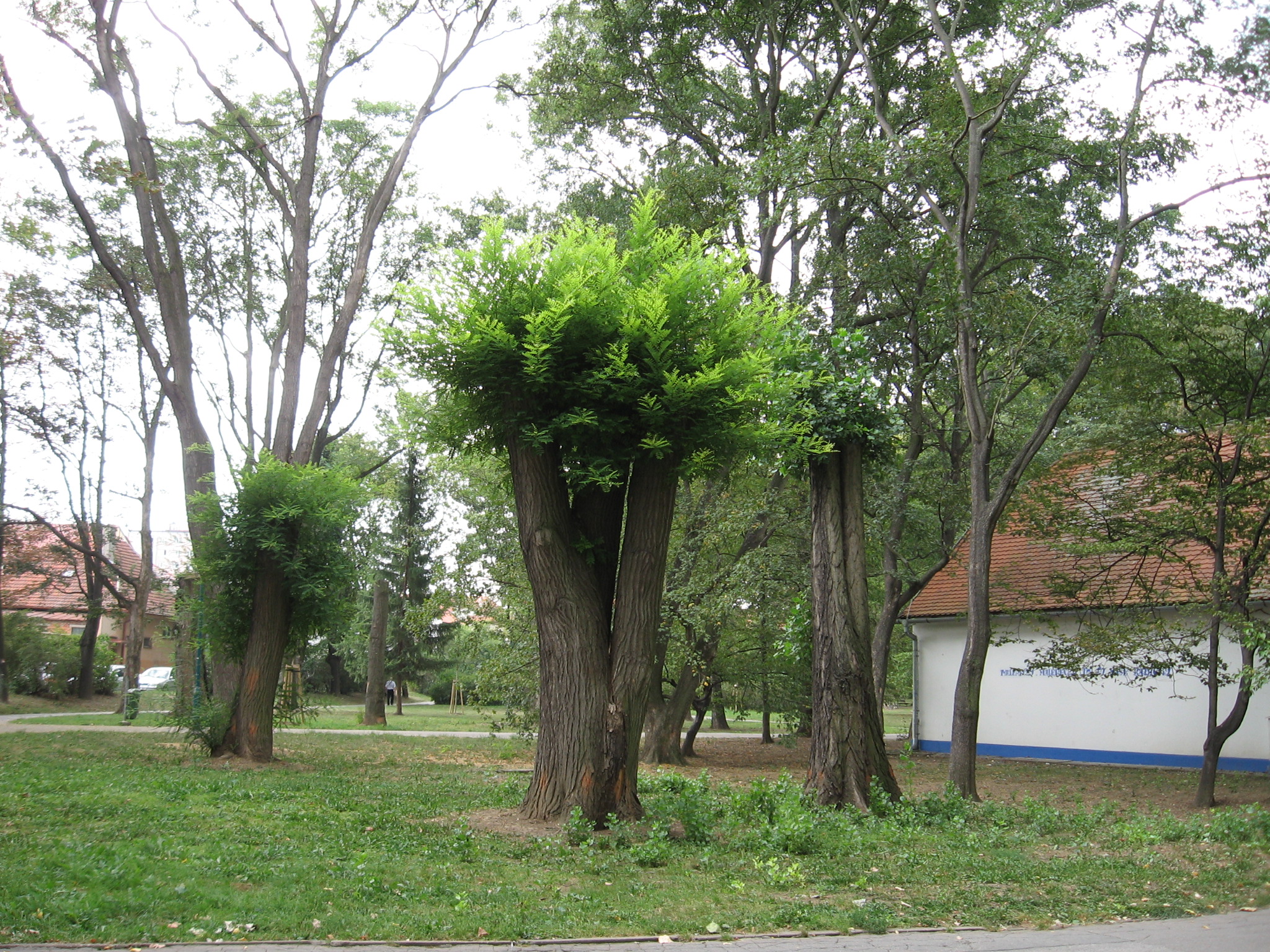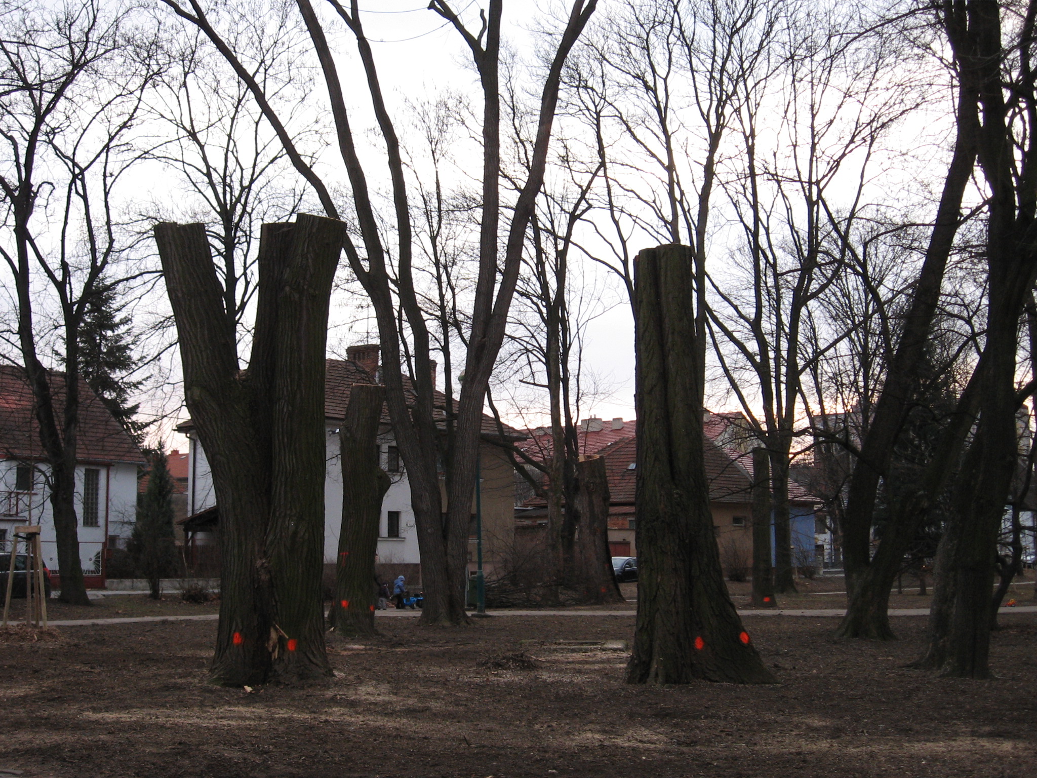 K našemu projíždím vždycky parkem. Zaujalo mě, jak krásně obrostly 3 stromy, z nichž v lednu letošního roku zůstaly jen pahýly (jak se prořezával park - a to fest, padlo dost stromů). Astro, už jsem tam byla s foťákem a srovnání těch dvou pohledů - leden 2012 - srpen 2012 posílám. Jen jsem to nemohla vyfotit přesně ze stejného úhlu, protože mi tam prosvítalo slunce a z fotky by proti slunci moc nebylo.